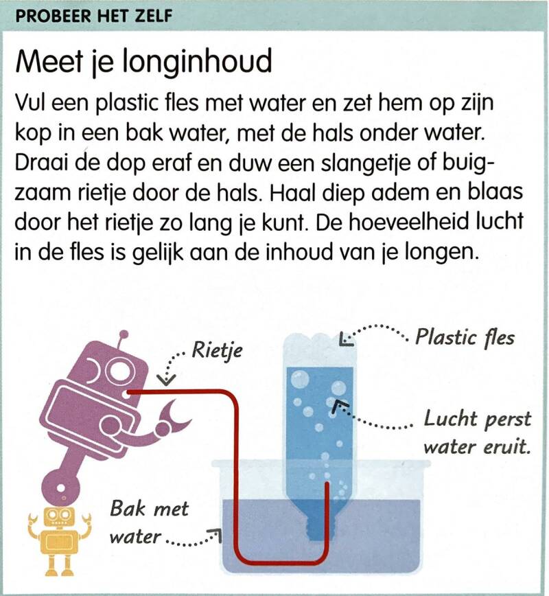 Misschien kan je er een wedstrijdje van maken met broertjes / zusjes / vriendjes. Wie het snelste of het meeste water in 1x eruit kan blazen. MAAR let wel op! Als je licht in je hoofd wordt of duizelig stop dan even om weer op adem te komen, we willen natuurlijk niet dat je dadelijk flauwvalt!