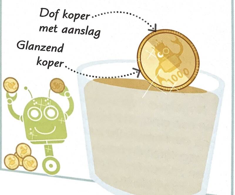 Je kunt een reactie tussen een zuur en een metaaloxide gebruiken om dof geworden munten weer te laten glimmen alsof ze nieuw zijn. Het zuur haalt de aanslag (metaaloxide) weg.