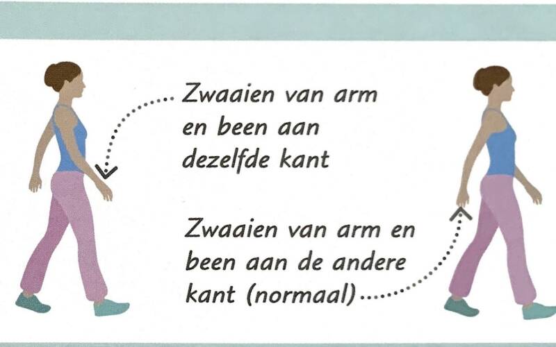 Probeer eens je rechterarm met je rechterbeen en je linkerarm met je linkerbeen vooruit te zwaaien. Dat voelt heel raar!